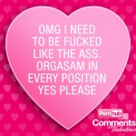 Nothin says lovin quite like seeing real Pornhub video comments on Valentines cards. In the throes of watching a truly hot porn video, passion rules the comment section, and all sensibility goes out the window (along with good grammar and political correctness).