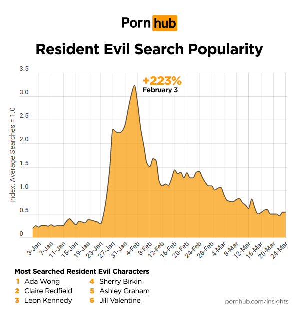 The first three months of 2019 have seen numerous new game releases, so our friends at Kotaku asked which ones sent gaming fans to Pornhub in search of the hottest new game-play and porn parody videos.