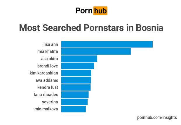 The most searched for pornstar in Bosnia is Lisa Ann, followed by Mia Khalifa and Asa Akira.