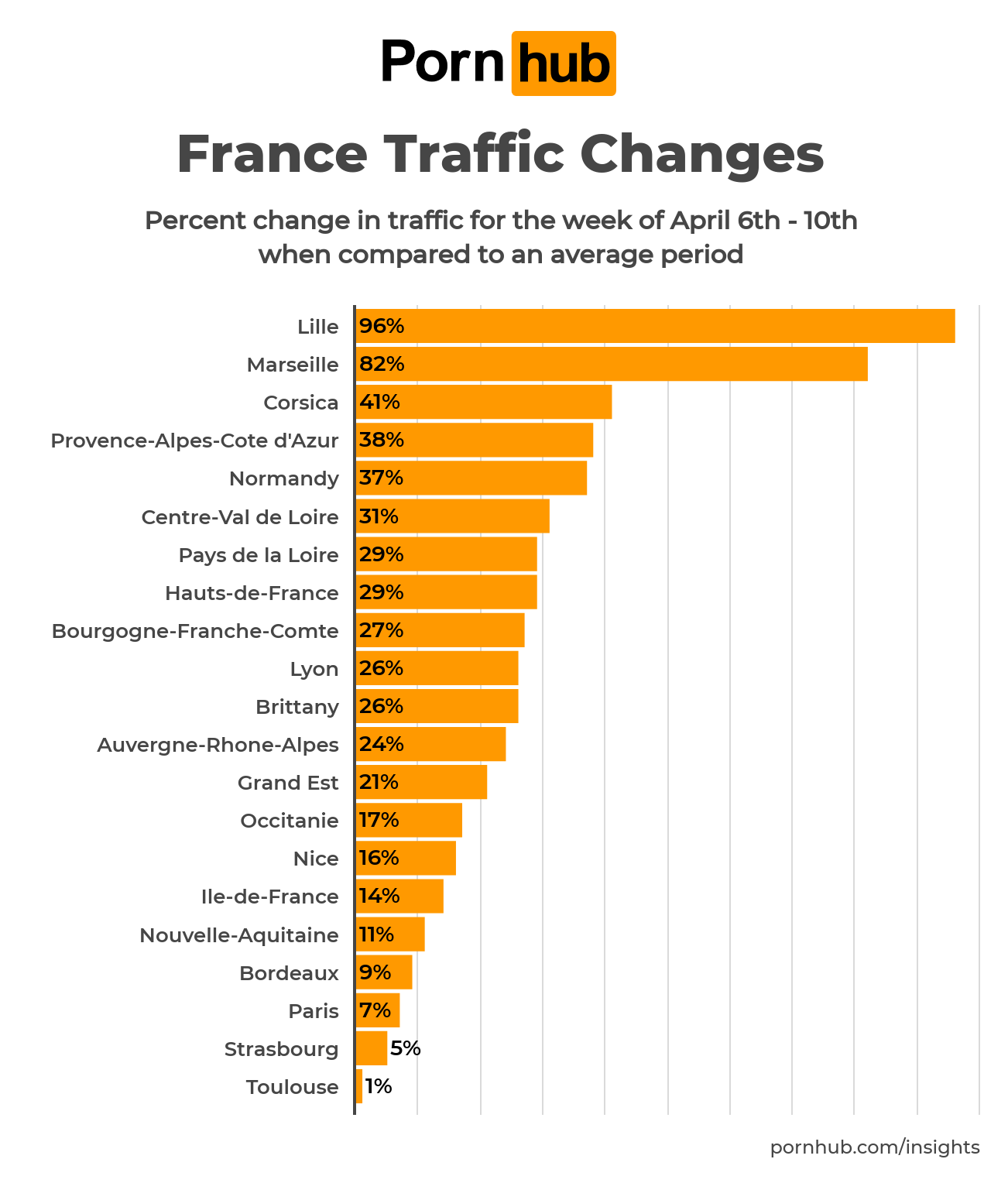 In this edition of Pornhub Insights, we take a look at how the Coronavirus pandemic has changed traffic across France including provinces and top cities.