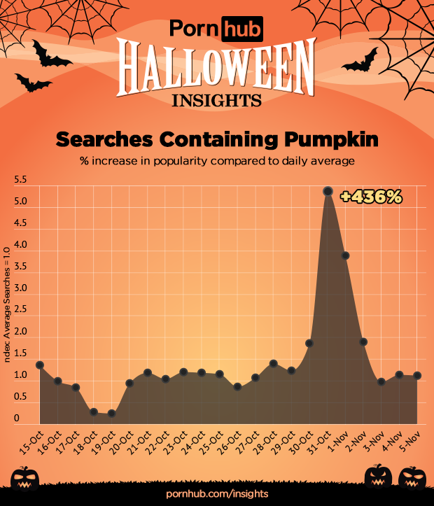 And oddly enough, even searches containing “pumpkin” are up 436% on Halloween.