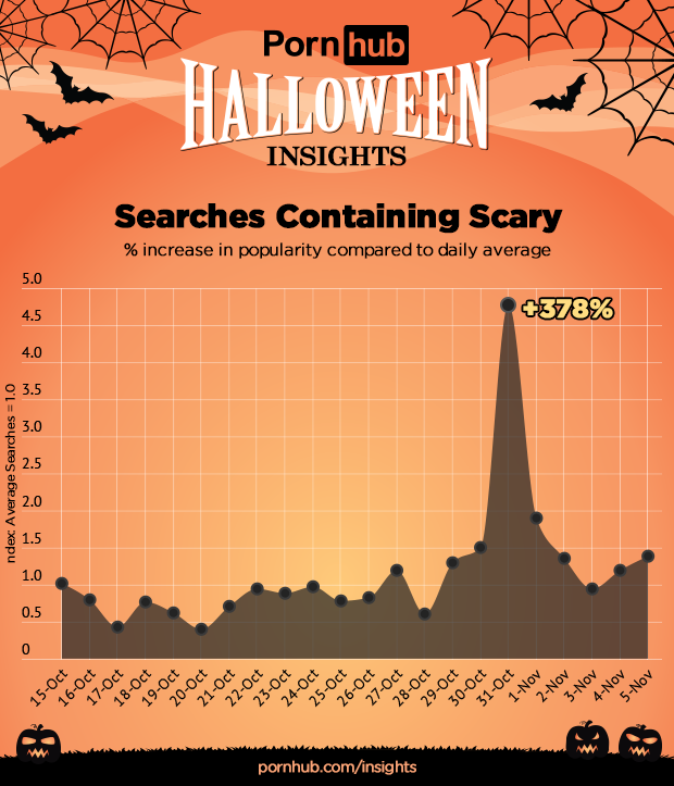 “Costume” and “Cosplay” (NSFW) are popular searches throughout the year, but even they see an increase of 161% on October 31st.