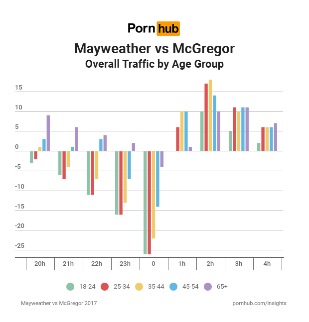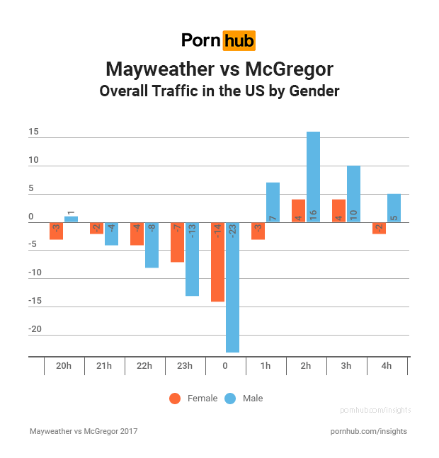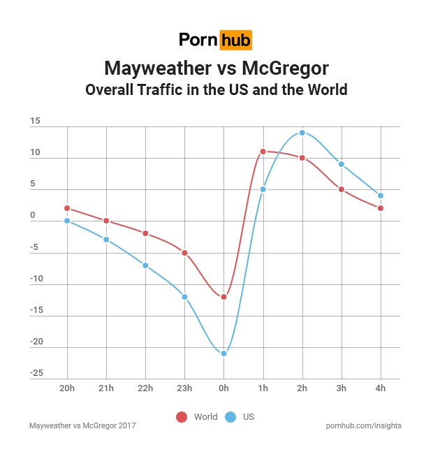 It was one of the most highly anticipated sporting events of the year, which, as we have come to see with the likes of the NBA Finals, World Series and Super Bowl, means that traffic on Pornhub was sure to be affected. We teamed up with our friends over at Men’s Health to see exactly how much typical traffic levels fluctuated while Mayweather and McGregor traded blows.