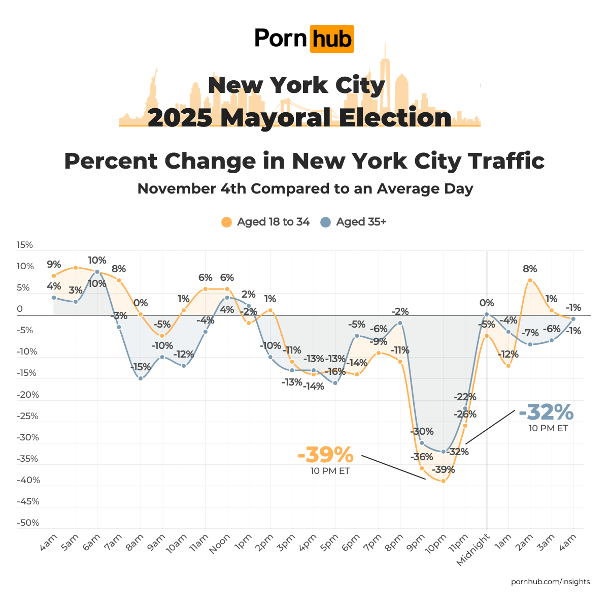 As one of our most active cities in the US, an election like this has a substantial effect on visits to Pornhub. So, when our friends at The New York Post asked our statisticians to pull some data, they were eager to analyze it and see what impact the action had on New Yorker’s browsing habits!
