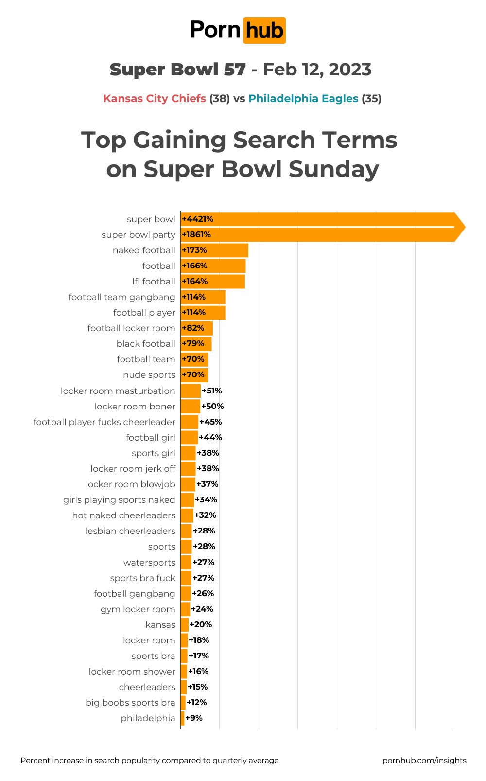 We also saw a surge in popularity around locker room-based terms. “Football locker room” was up +82%, “locker room masturbation” was up +51%, “locker room boner” was up +50%, “locker room jerk off” was up +38%, and “locker room blowjob” was up +37%.